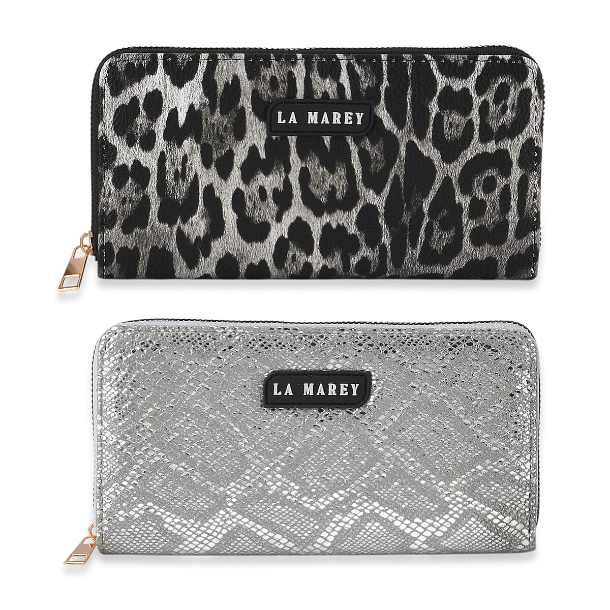 La Marey Black Faux Leather Leopard and Silver Crocodile Print Set of 2 Wallet