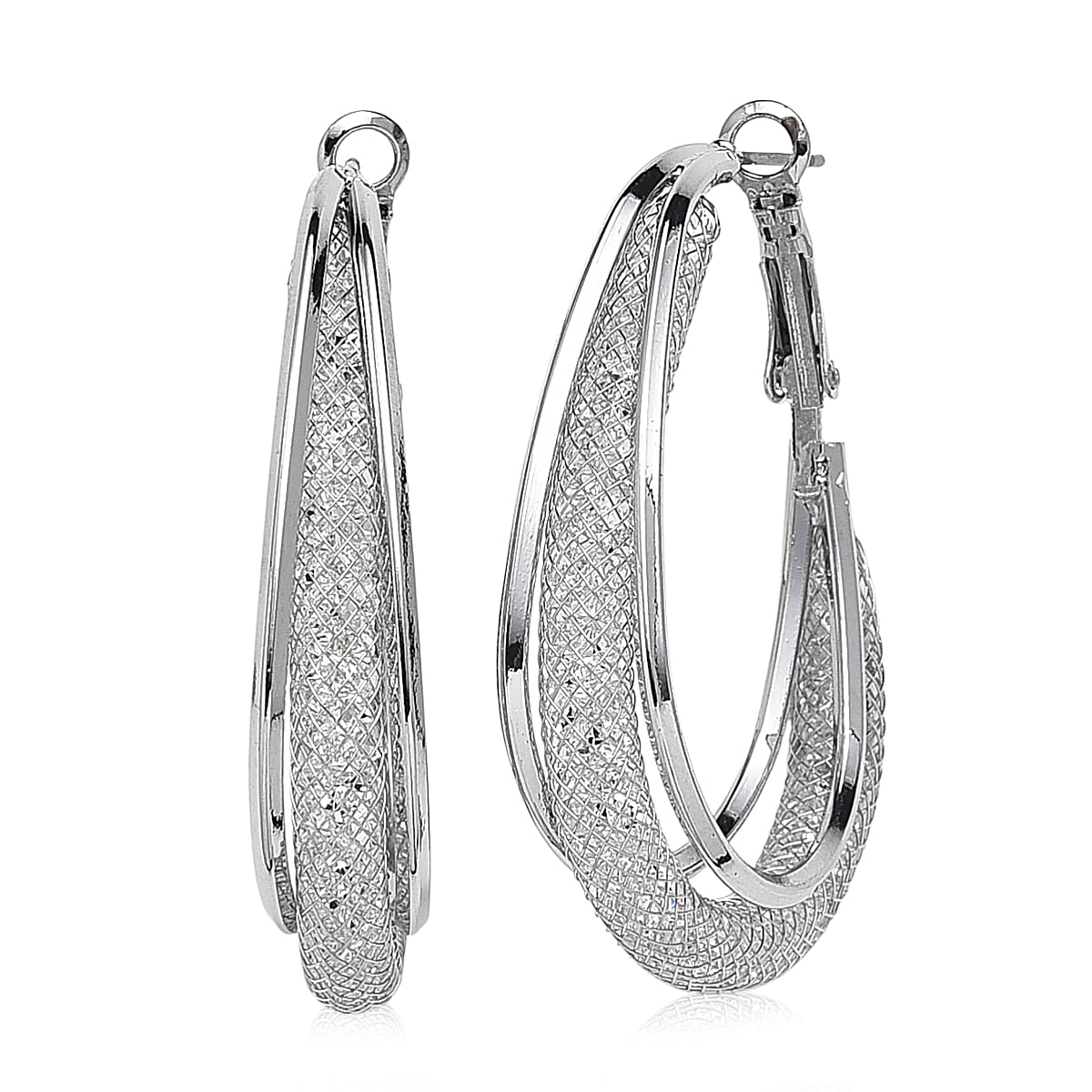 Austrian Crystal Mesh Hoop Earrings in Silvertone