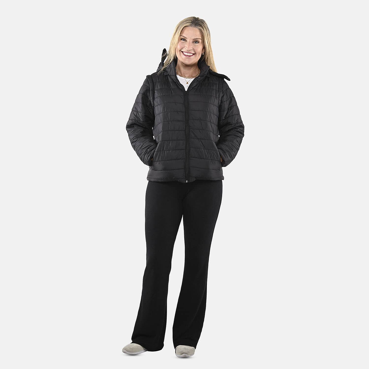 Black Padded Puffer Jacket with Detachable Hood and Long Sleeves - L