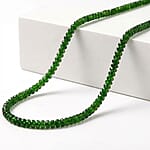 Elevate your style with our exquisite 14K yellow gold AAAA chrome diopside beaded necklace, a true testament to luxury and sophistication. This stunning piece is not just a necklace; it's a statement, a celebration of timeless beauty that transcends trends. As you drape this 18-inch masterpiece around your neckline, feel the opulence of the AAAA-grade chrome diopside beads exuding their rich, deep green hues, meticulously strung together to create a harmonious symphony of elegance. And with the added 2-inch extender, you have the flexibility to customize the length, ensuring the perfect fit for every occasion.