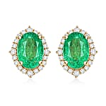 Certified & Appraised Luxoro AAA Kagem Zambian Emerald and G-H I2 Diamond 1.75 ctw Earrings in 14K Yellow Gold (Size 8.0)