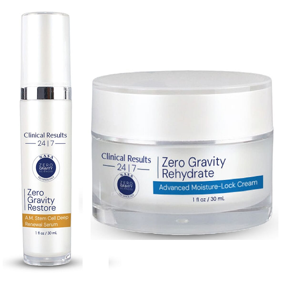 Clinical Results 24/7 Zero Gravity Restore & Rehydrate Set (Stem Cell Serum 1oz, Advanced Cream 1oz) Made in US (Ship in 3-5 Days)
