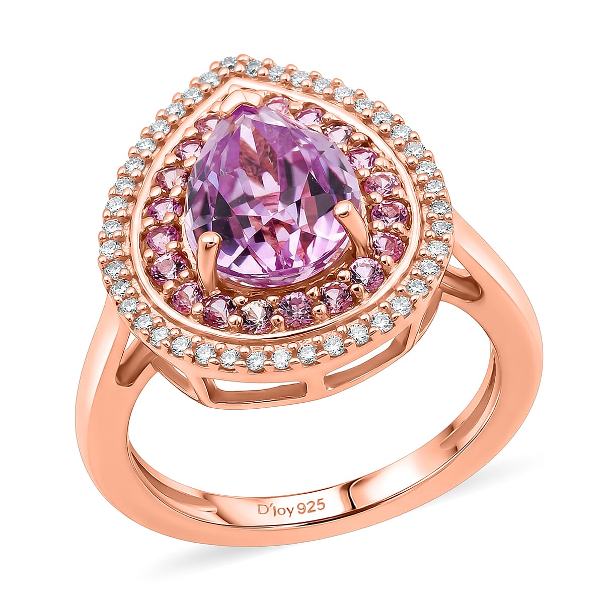 Indulge in romantic beauty with this D’Joy Patroke kunzite ring in sterling silver. Its AAAA violet-purple center radiates a soft, captivating rose-gold halo. You will cherish how this multi-gemstone ring celebrates your most meaningful moments together.