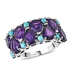 D'Joy African Amethyst, Lagoon Turquoise Ring in Rhodium Over Sterling Silver 5.50 ctw (Size 7.0)