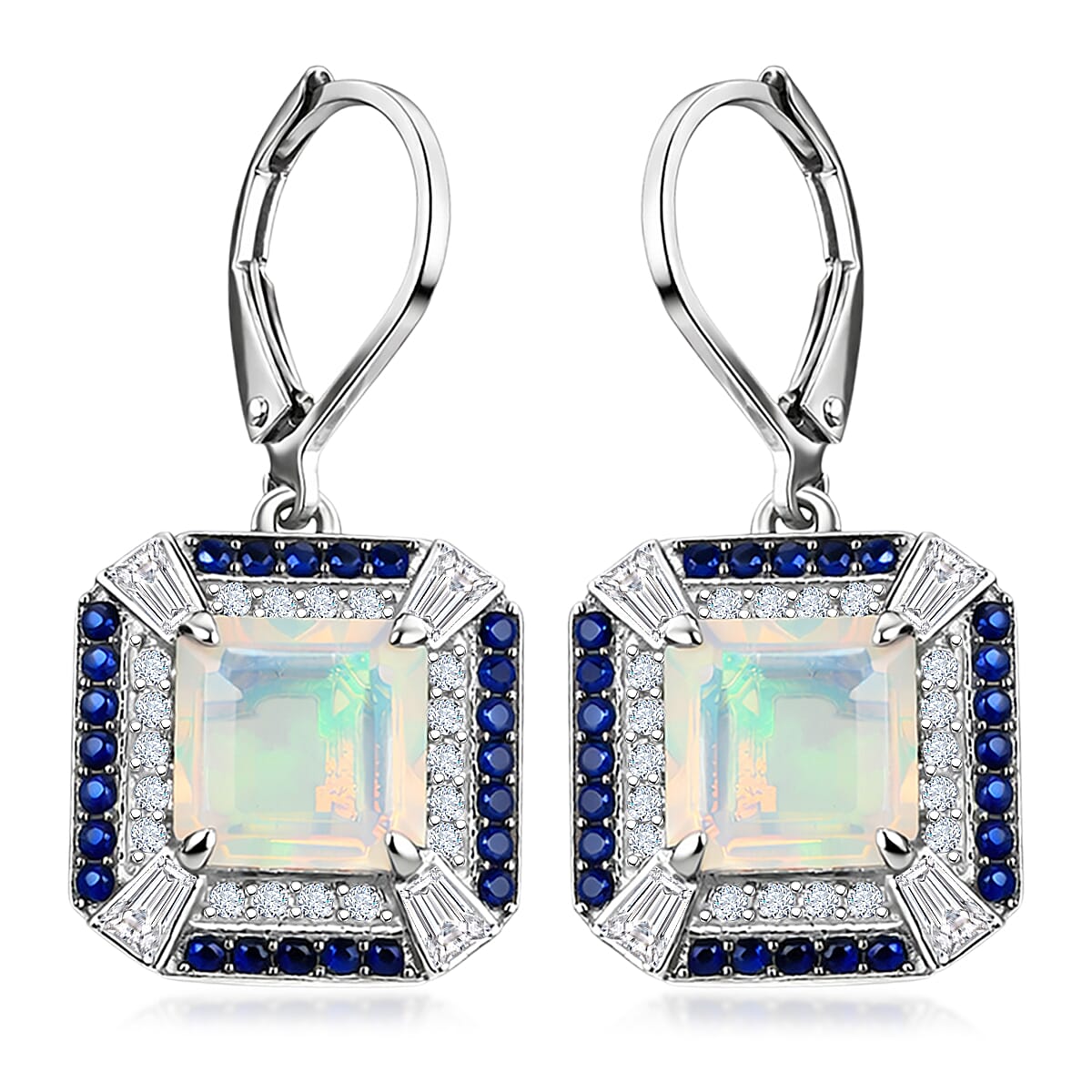 D'Joy Asscher Cut Premium Ethiopian Welo Opal and Multi Gemstone 4.35 ctw Geometric Radiance Earrings in Rhodium Over Sterling Silver