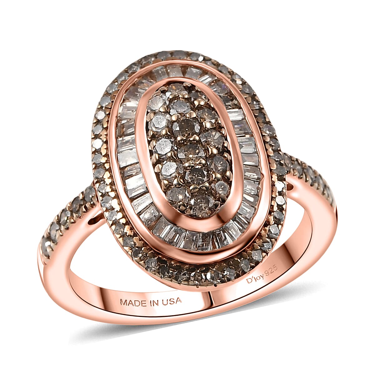 D'Joy Natural Champagne Diamond 1.00 ctw Royal Sunburst Ring in 18K Vermeil Rose Gold Over Sterling Silver (Size 6.0)