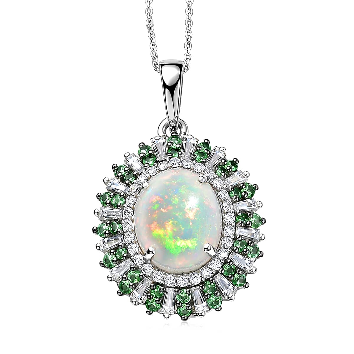 D'Joy Premium Ethiopian Welo Opal and Multi Gemstone 4.85 ctw Sunburst Pendant Necklace in Rhodium Over Sterling Silver 20 Inches