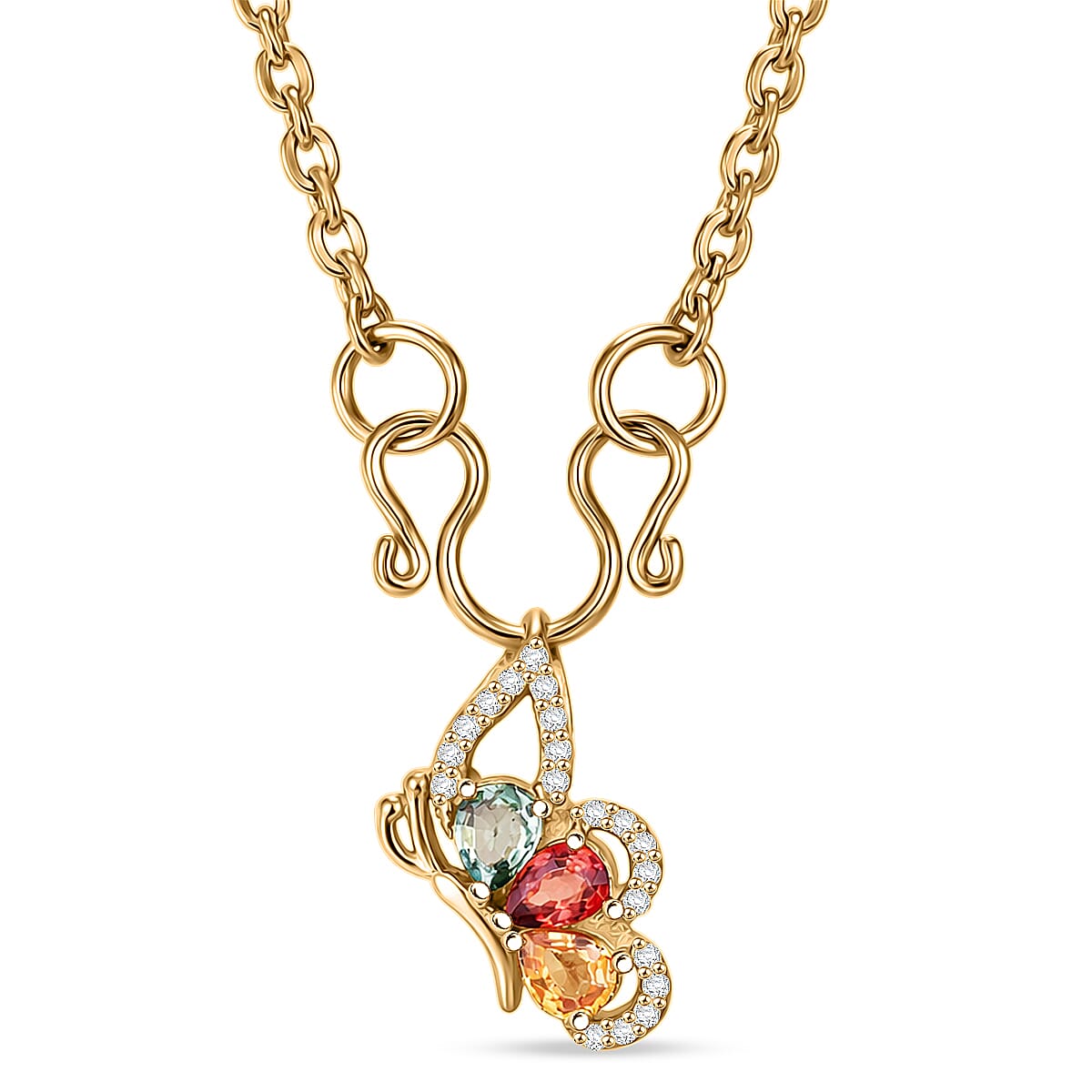 D'Joy Premium Multi Sapphire and White Zircon 1.00 ctw Flutter Glow Pendant Necklace in 18K YG Plated Sterling Silver 20 Inches