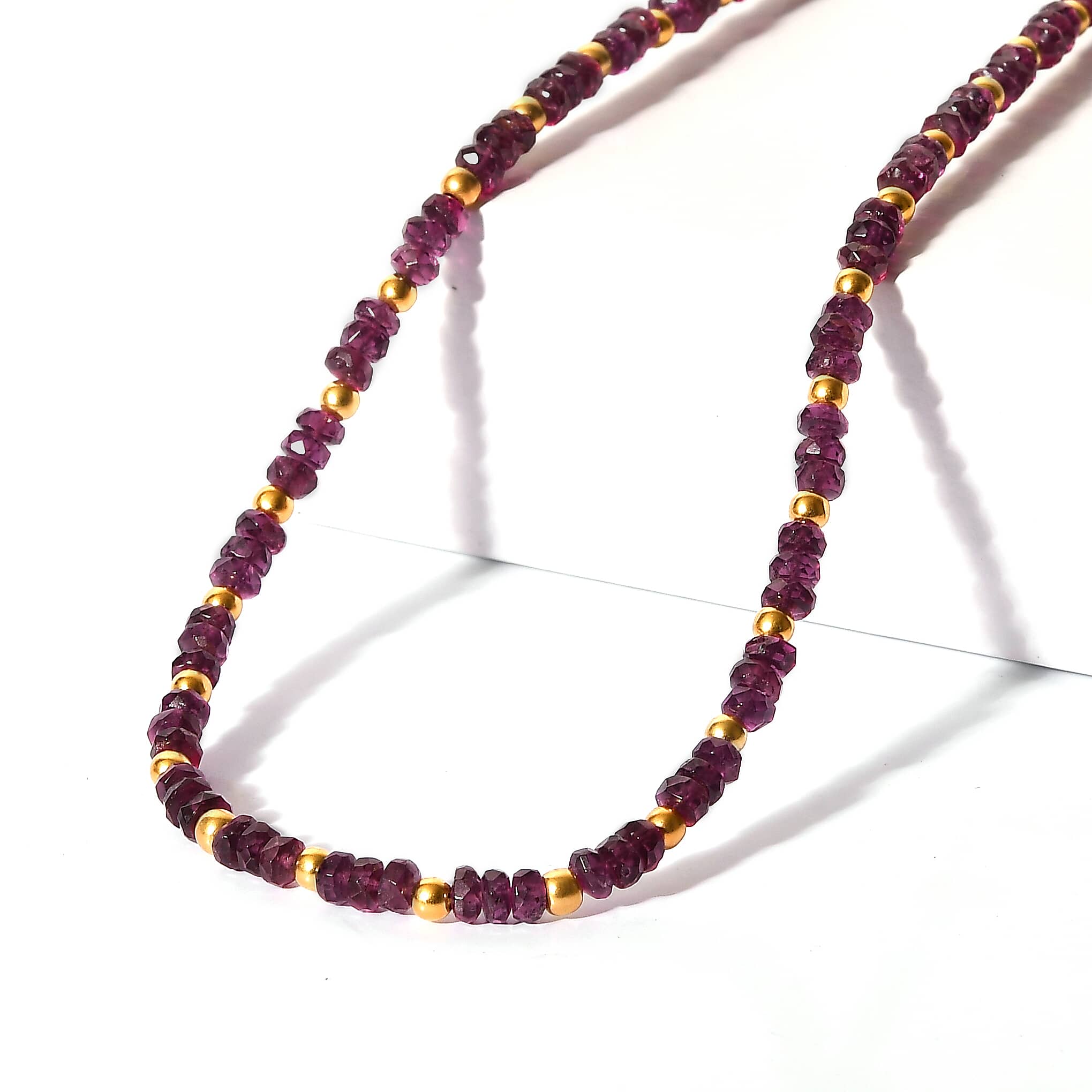 D'Joy Premium Radiant Ember Garnet 70.00 ctw Beaded Necklace in 18K Vermeil Yellow Gold Over Sterling Silver 18-20 Inches