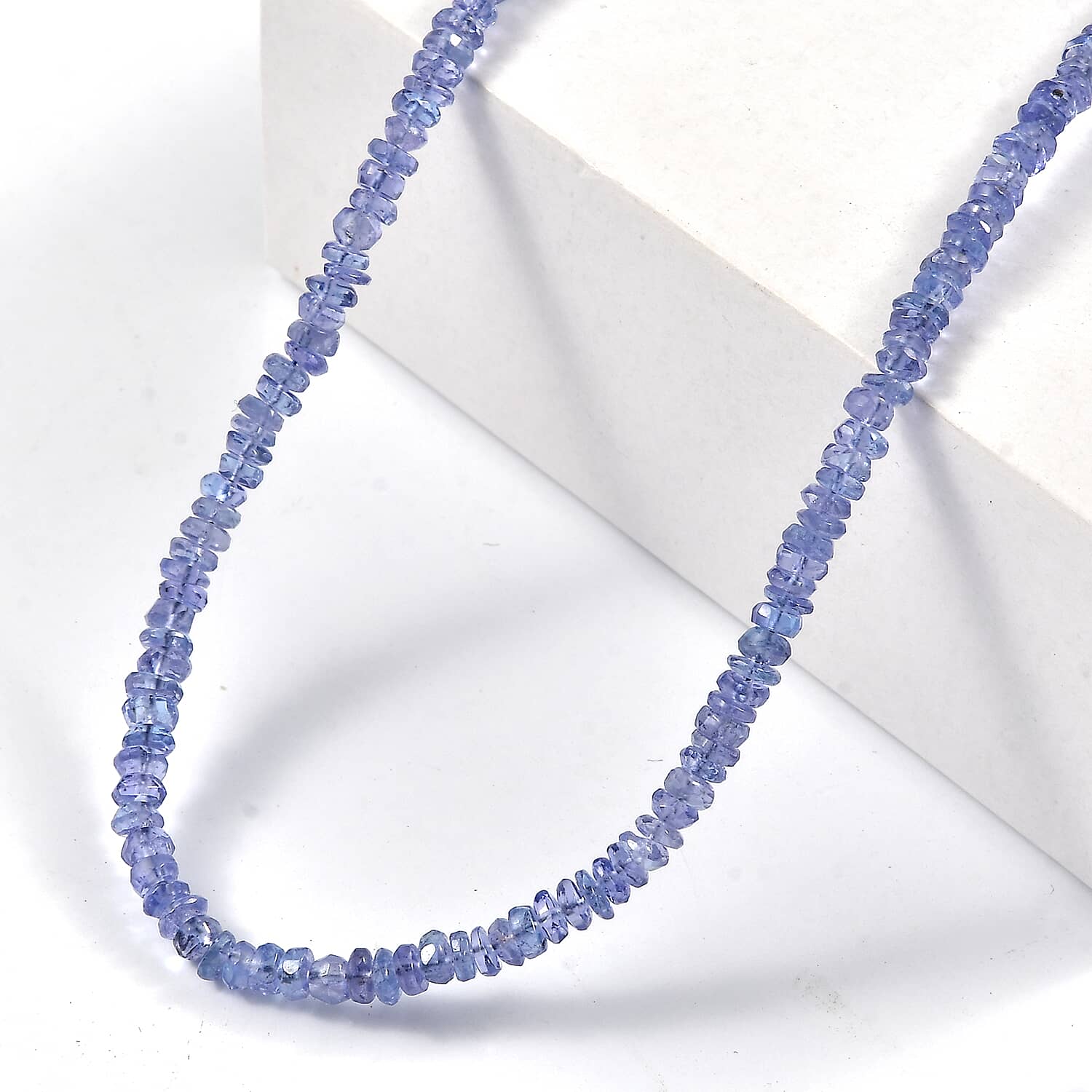 D'Joy Premium Tanzanite 36.00 ctw Beaded Necklace in Rhodium Over Sterling Silver 18-20 Inches
