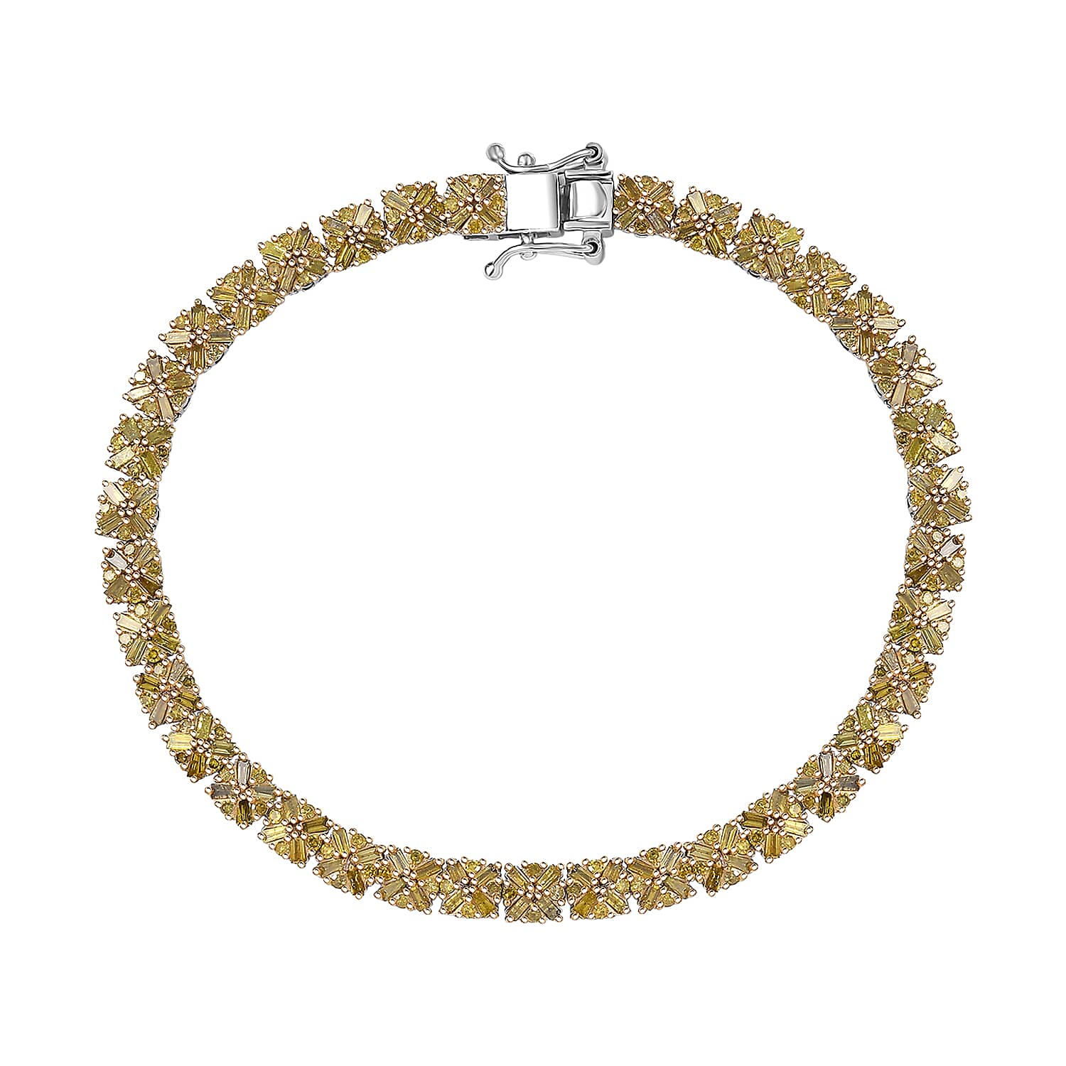 D'Joy Yellow Diamond 3.00 ctw Royal Crossfire Bracelet in Rhodium Over Sterling Silver (7.25 In)