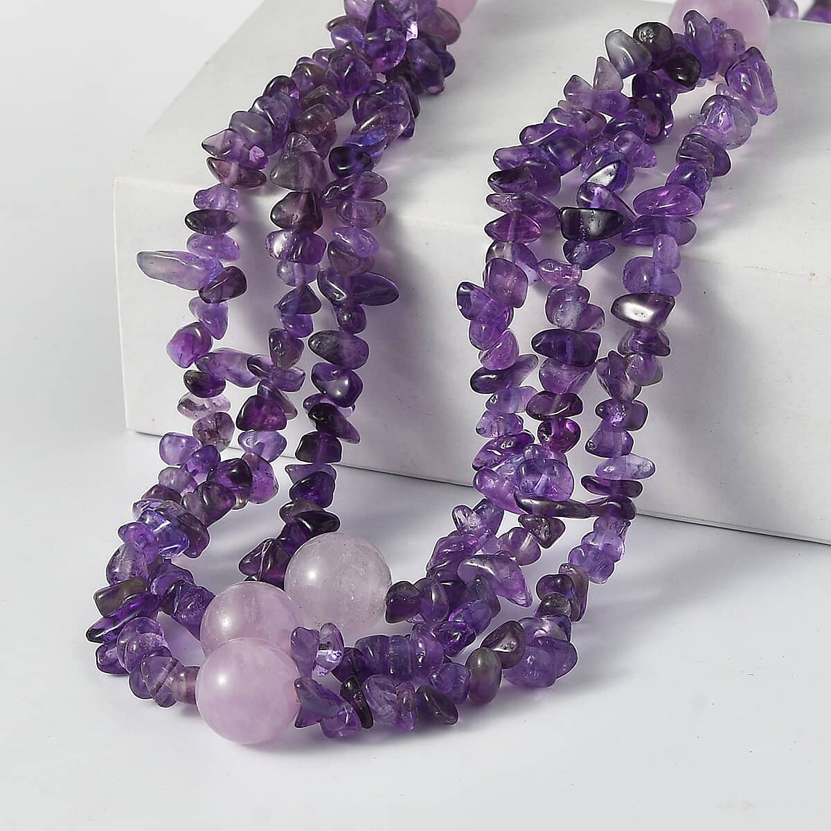 EverTrue African Amethyst and Rose De France Amethyst 200.00 ctw Chips Necklace in Platinum Over 18 Inches