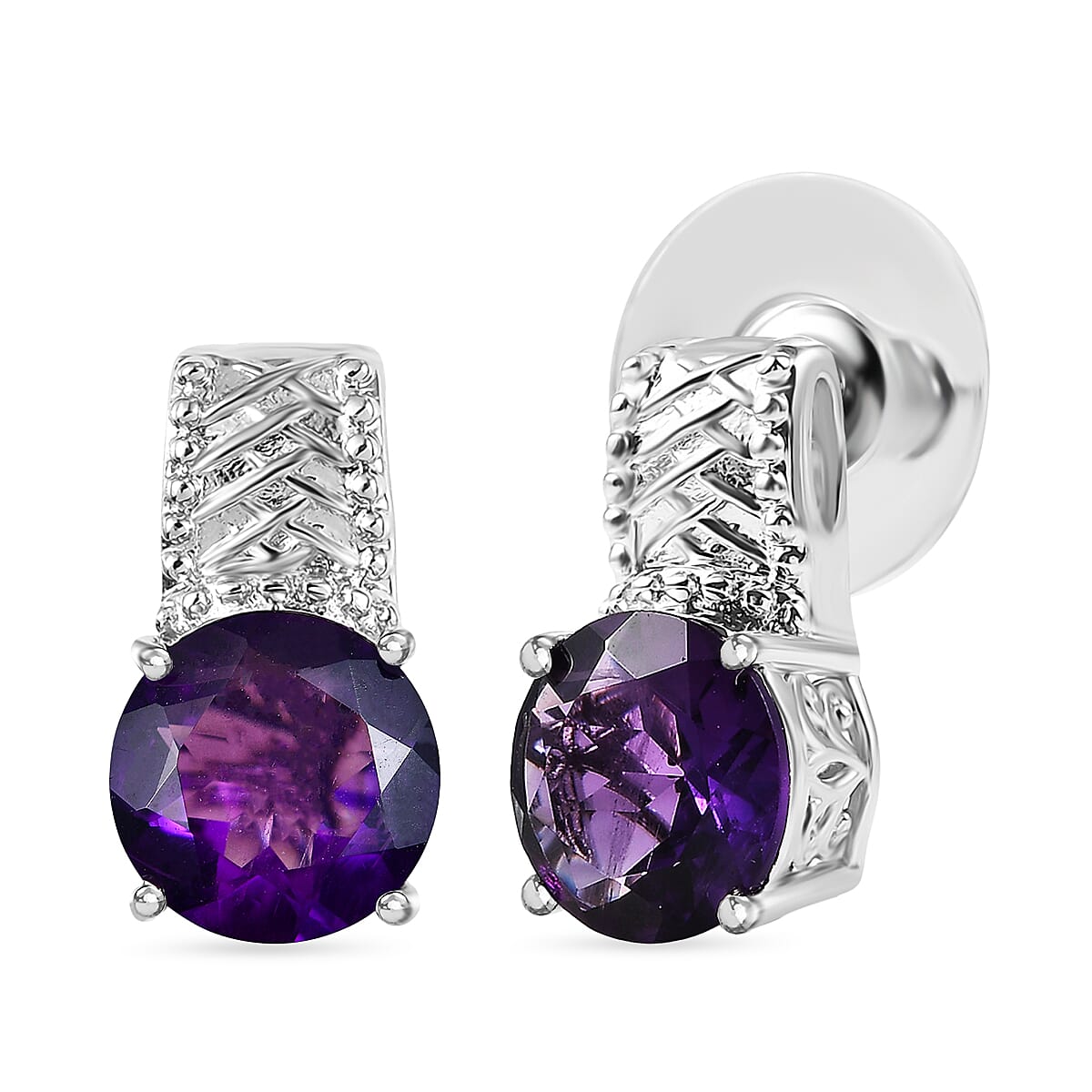 EverTrue African Amethyst Stud Push Post Earrings in Platinum Bond 5.00 ctw