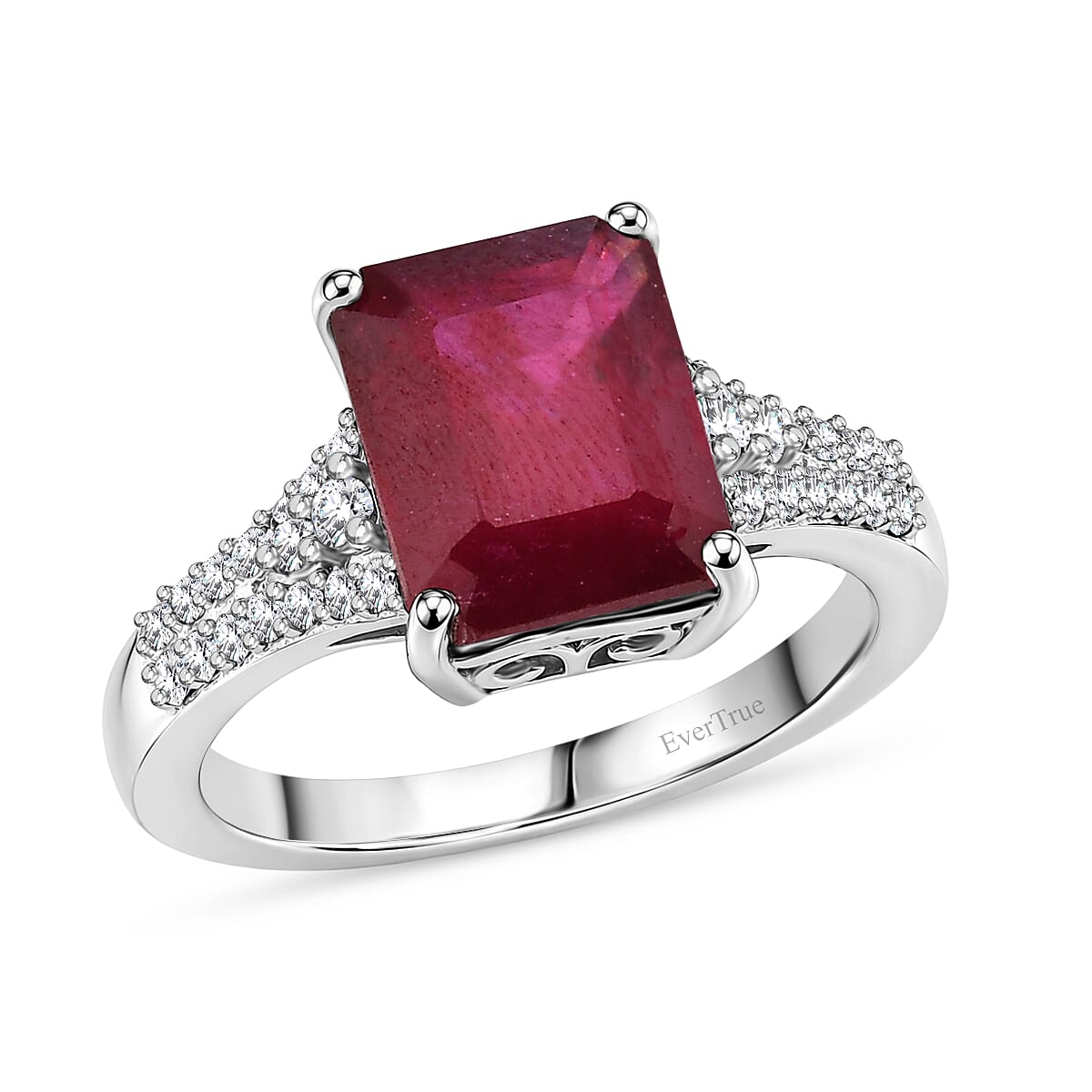 EverTrue Niassa Ruby (FF) and White Zircon 5.35 ctw Bridge Architecture Ring in Platinum Bond (Size 10.0) (Ships in 5-7 Days)