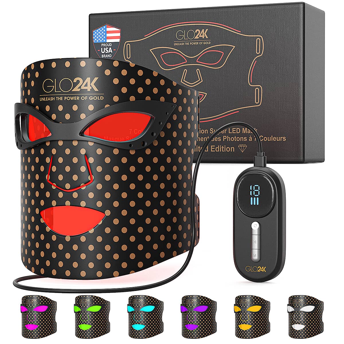 GLO24K 7 Color Photon Rejuvenation Super LED Mask (Lifetime Warranty)