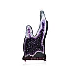 Formed in the ancient heart of Uruguay, this majestic 754-lb amethyst geode radiates strength and serenity. Its luminous violet crystals uplift the spirit, inspiring peace and clarity. Elevated on a sleek stand, it transforms any space into a sanctuary of luxury.