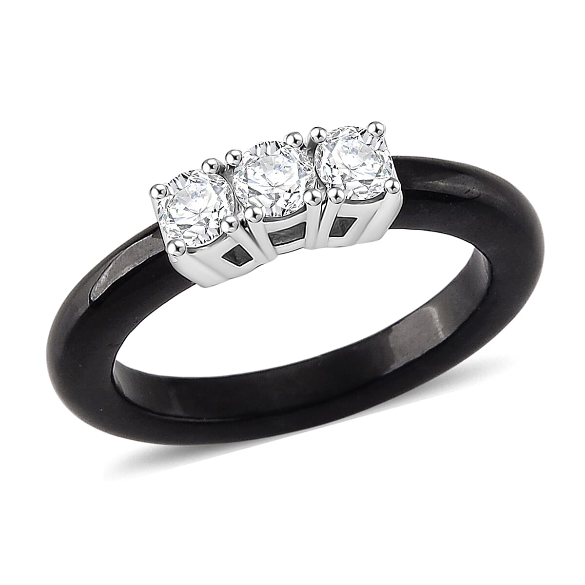 Lab Grown Diamond G-H SI and Black Jade (D) 7.50 ctw Band Ring in Rhodium Over Sterling Silver (Size 6.0)