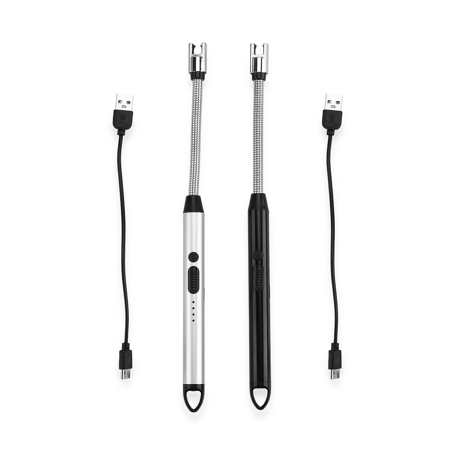 Livmore 2pcs Rechargeable Flameless Stainless Steel Electric Lighter - Black and Silver