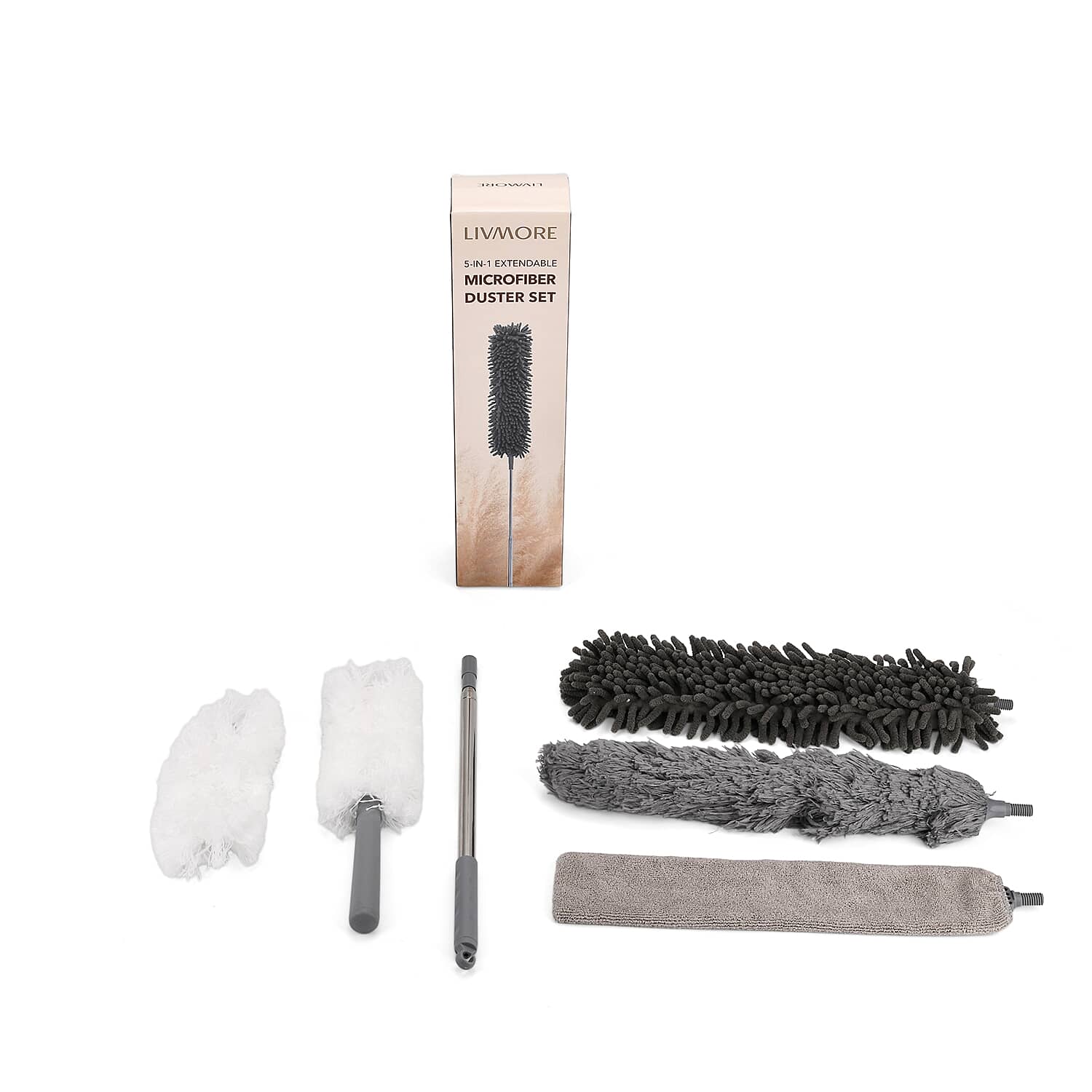 Simplify everyday cleaning with the Livemore 5-in-1 extendable duster set. This versatile duster set reaches corners and high spots with effortless ease. Your home stays fresh and organized thanks to this effective cleaning solution.
