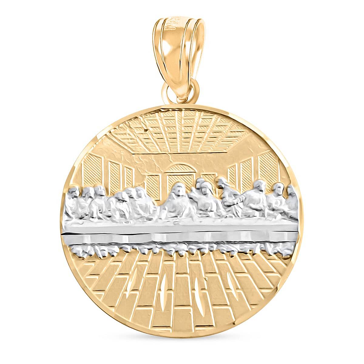 Step into a realm where faith meets fashion with our exquisite 10K gold Last Supper medallion pendant. This masterpiece merges the spiritual significance of the Last Supper with the timeless allure of plain gold jewelry, creating a mesmerizing piece that speaks volumes of your refined taste and devout spirit.