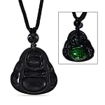 Natural Black Jade 120.00 ctw Carved Buddha Pendant with Black Cord Necklace (28 Inches)