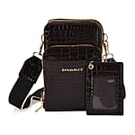 Passage Dark Coffee Crocodile Embossed Faux Leather Crossbody Bag with Shoulder Strap 47 Inches