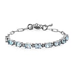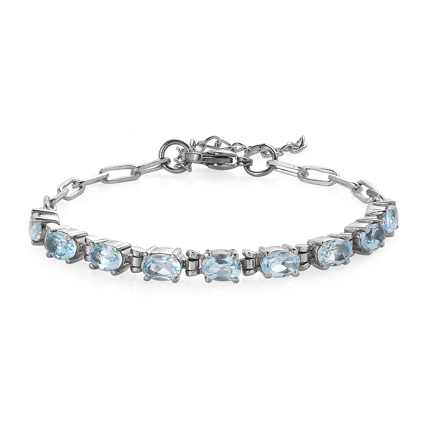 Sky Blue Topaz 5.60 ctw Paper Clip Chain Bracelet in Platinum Bond and Stainless Steel (6.5-8.0In)