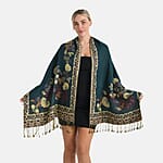 TAMSY Green Floral Jacquard Scarf with Tassels – One Size Fits Most