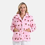 TAMSY Pink Cherries Plush Fleece Collared Button-up Lounge Jacket - Medium