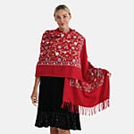 TAMSY Red Vine Soft Woven Embroidered Scarf with Tassels – One Size