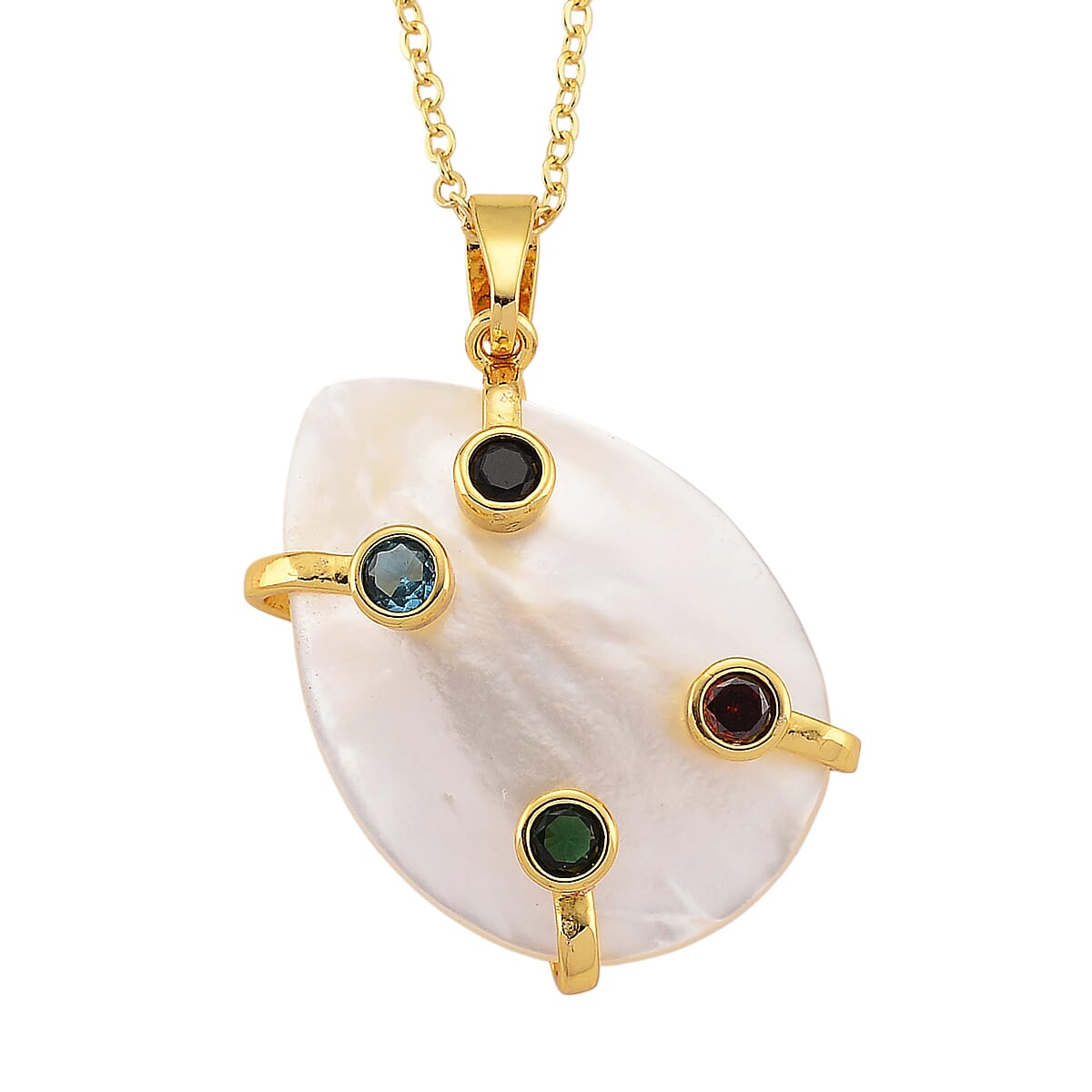 White Keshi Pearl, Simulated Multi Color Diamond Pendant Necklace (20 Inches) in Goldtone